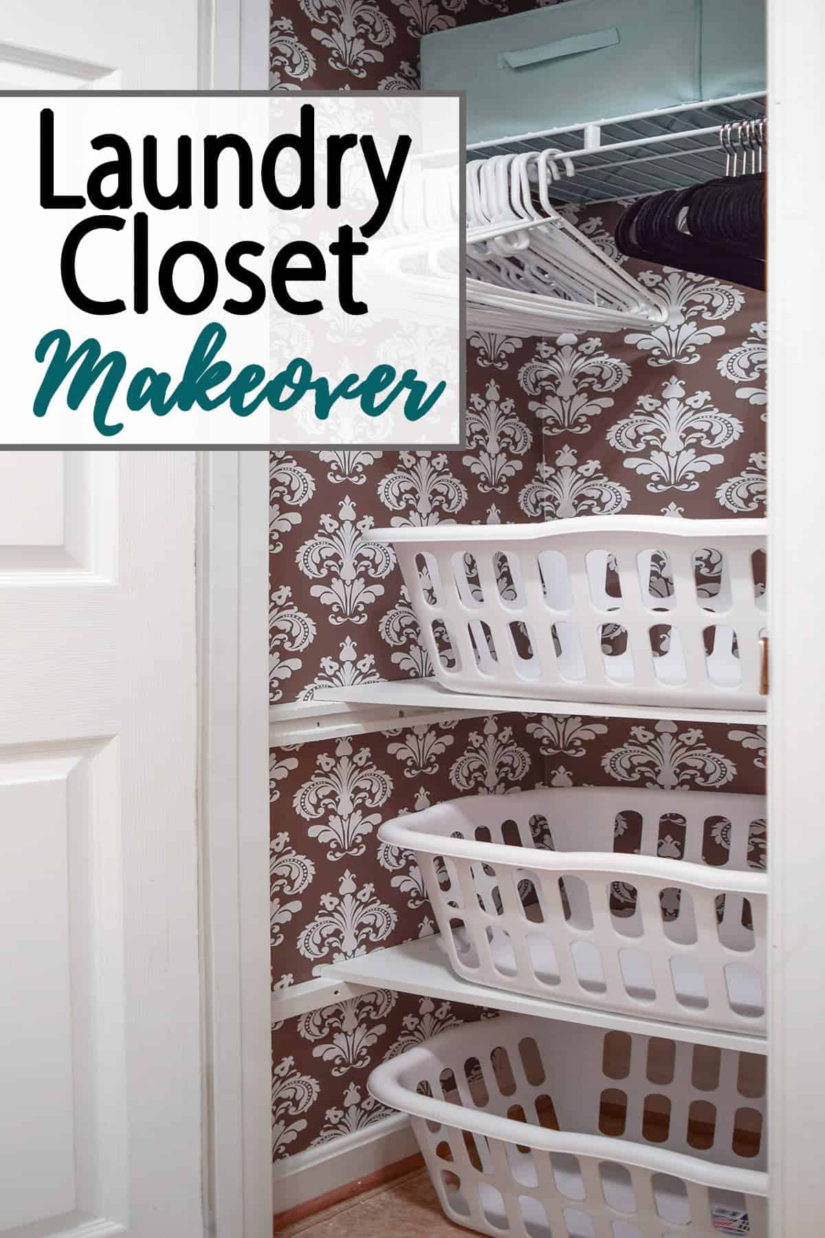 So happy to have a place to store the laundry ready for the washing machine. And it is pretty too! I plan on putting a sliding door in, but that is a project for another day. I hope you enjoyed this little laundry room closet makeover!